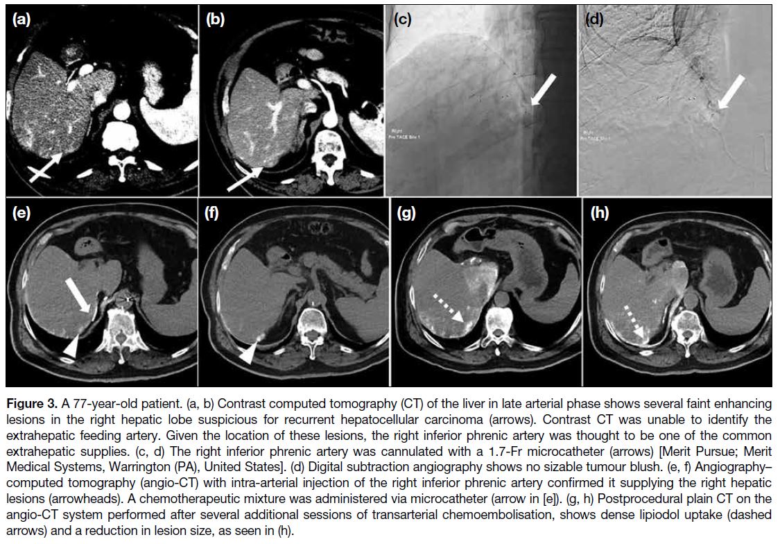 [arrowheads]. Chemoembolisation was performed. (h-j) Immediate