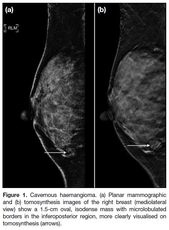 Figure 1. Cavernous haemangioma. (a) Planar mammographic